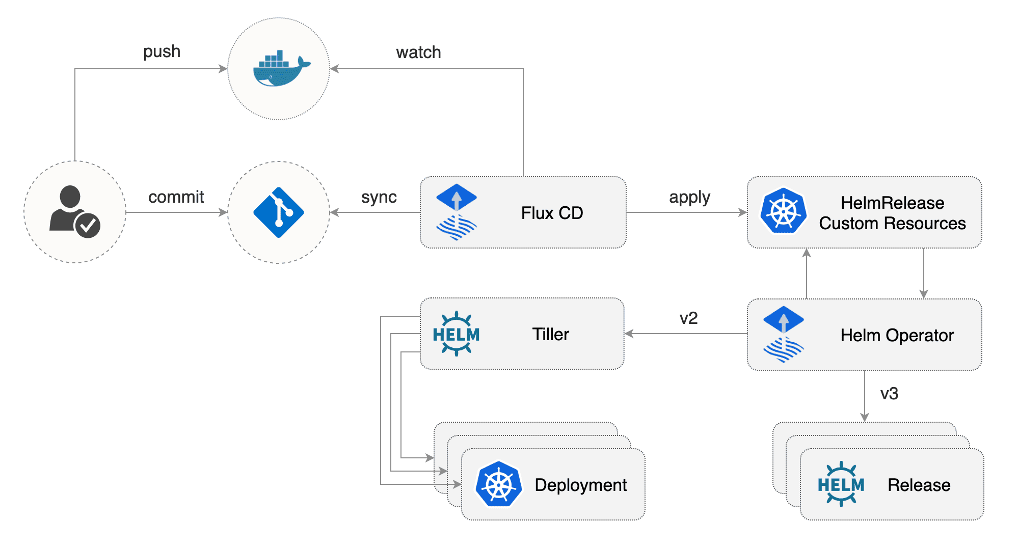 When that is not enough - you can use Helm for packaging and templating of your application resources. This is all great, but you still need a way to apply all of these elements to the cluster. Running kubectl apply or helm upgrade from your machine or CI quickly become cumbersome.